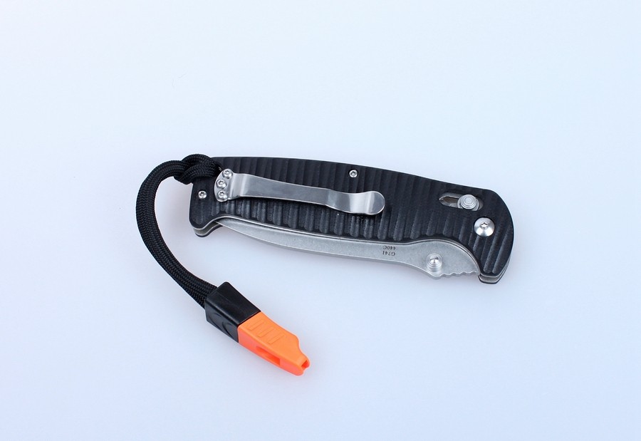 Ganzo G7412P-VS model fokusiran na turiste, ribolovce i druge entuzijaste prirode. Ovaj sklopivi nož sa oštricom od nerđajućeg čelika i opcionim dodacima kao što je zviždaljka pričvršćena za trakicu.