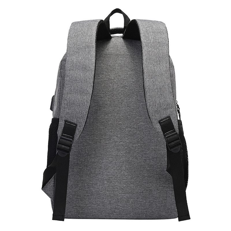 Ranac sa dva glavna odeljka, prednji džep sa rajsferšlusom, naloženi odeljak za laptop veličine ekrana 15", dva bočna džepa, USB konektor