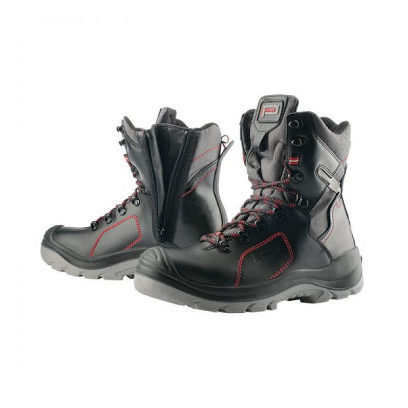 Model zaštitne čizme sa čeličnom kapom i čeličnim listom, antistatik, protivklizni dvoslojni PU/TPU đon otporan na ulja, naftu i kiseline, ojačane u predelu prstiju i pete, apsorber energije u oblasti pete, puna goveđa koža tretirana voskom, vodoodbojne, reflektujući detalji, kopčaju se pertlama i zipom, ispunjen jezik i deo oko članka radi veće udobnosti, Wintherm® postava.