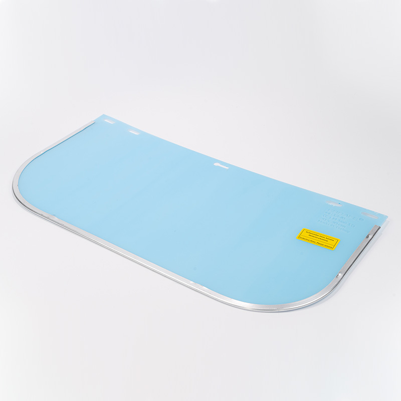 Polikarbonatski vizir oivičen aluminijumom. Dimenzije 20x40cm x 1mm. Poseduje otpornost na udar "S".