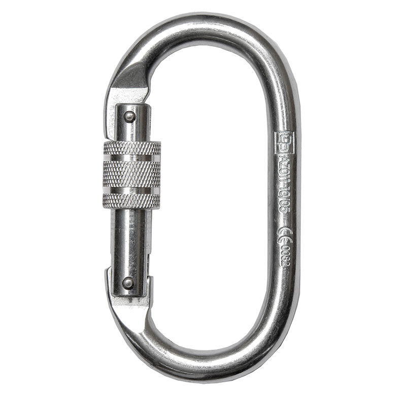 Automatski čelični karabin sa sigurnosnim zavrtnjem, za visinske poslove, širina otvora 22mm, dimenzije 108x60mm, težina 180gr.