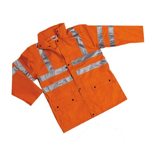 Odelo kišno fluoroscentno izrađeno 300D oksforda sa PU premazom. Šiveno sa lepljenim šavovima, vodonepropusno sa fluoroscentnim trakama.