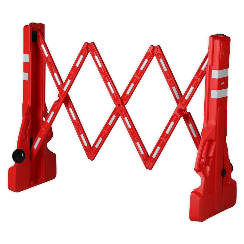 Barijera poseduje integrisanu ručku za lako prenošenje, kao i otvore za punjenje vodom ili peskom radi dodatne stabilnosti u spoljnim uslovima. Kada se ne koristi, zauzima minimalan prostor zahvaljujući sklopivom mehanizmu harmonike.