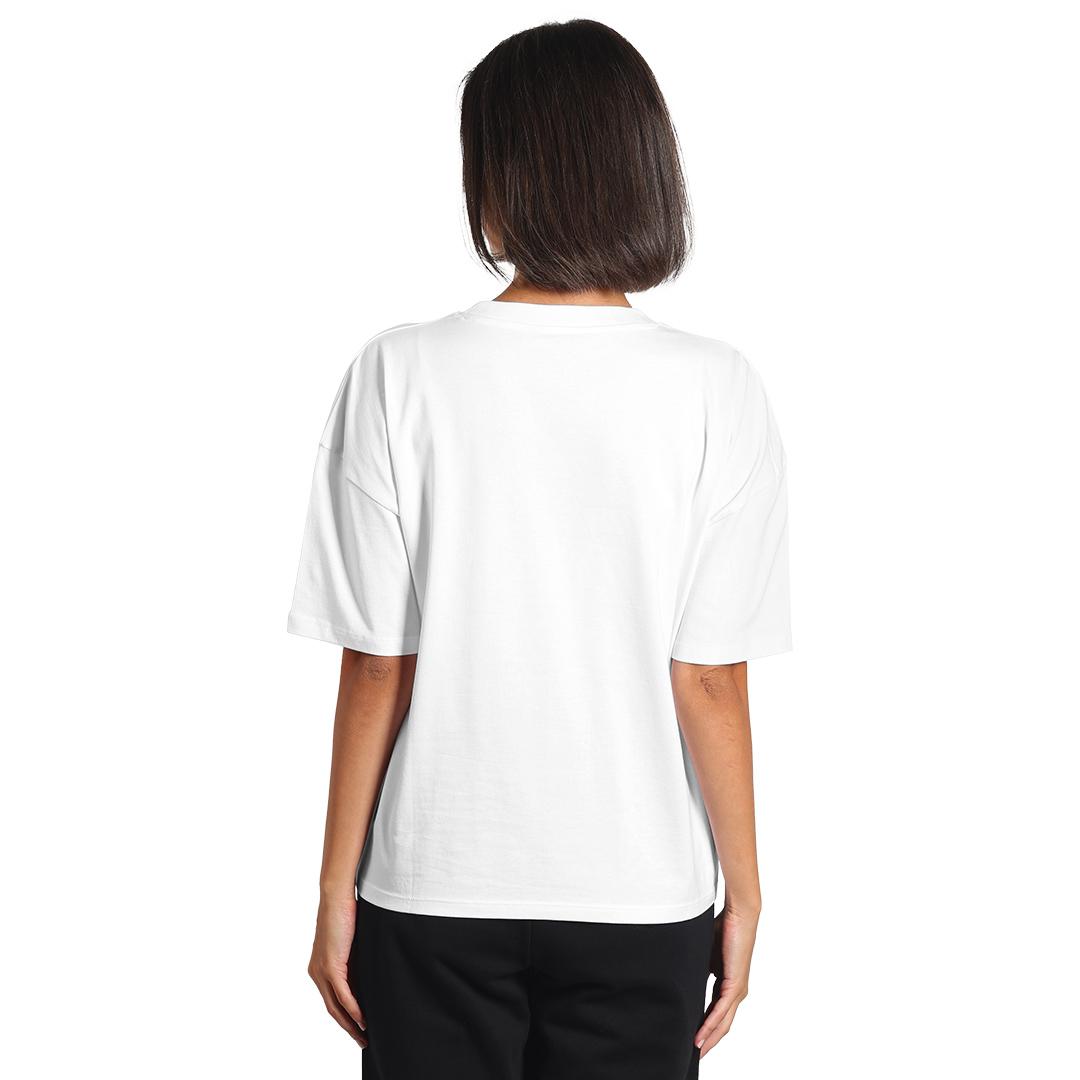 | Karakteristike | Ženski oversize/boxy kroj, šivena sa strane, dupli štepovi, dodatni štep duž ramena, ojačan okovratnik, minimalistički dizajn, pogodna za preslikač i sito štampu |