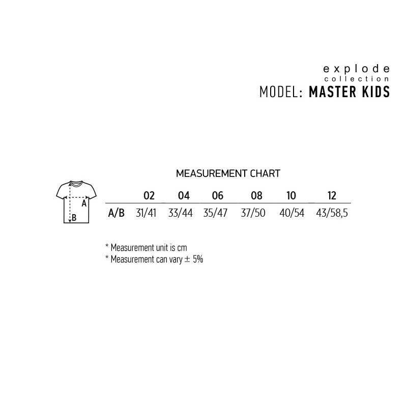 Dečja majica iz kolekcije MASTER, izrađena od 100% pamuka, gramature 150 g/m². Šivena je sa strane, sa duplim štepovima na renderu, rukavima i dnu, kao i dodatnim štepom duž ramena. Okovratnik je ojačan trakom radi dugotrajnosti i udobnosti. Opremljena je lako uklonjivom etiketom, pogodna za personalizaciju i štampu.