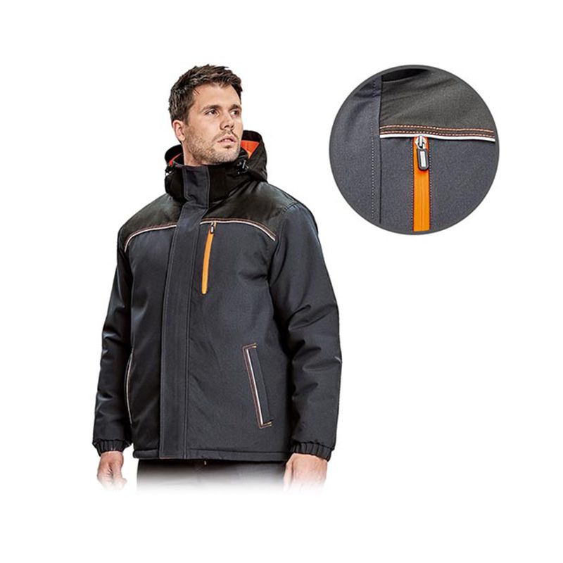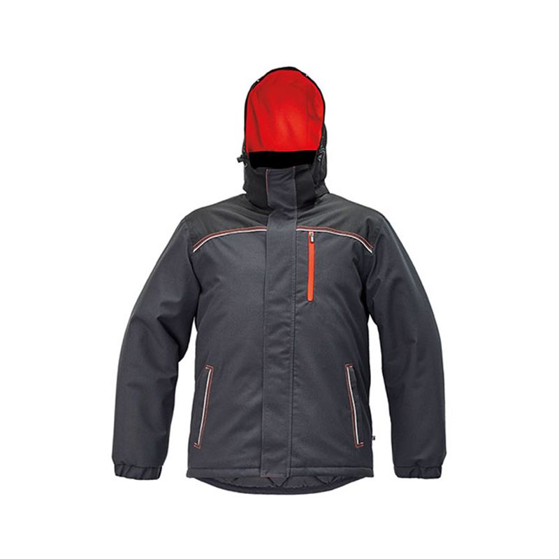 Muška zimska jakna od 100% polestera, 300D/ TPU, 200 g/m2 sa punjenjem i odvojivom kapuljačom. Kombinacija boja: tamno siva-žuta; tamno siva - narandžasta; tamnno siva- crvena;