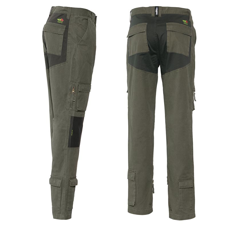 Radne Stretch-On pantalone sa više džepova od čistog pamuka sa umecima od rastegljivog Stretch materijala na mestima koja se najviše istežu prilikom kretanja. Na ovim pantalonama možete podesiti obim struka pomoću elastične trake i dugmića. Proizvod se isporučuje u kutiji.