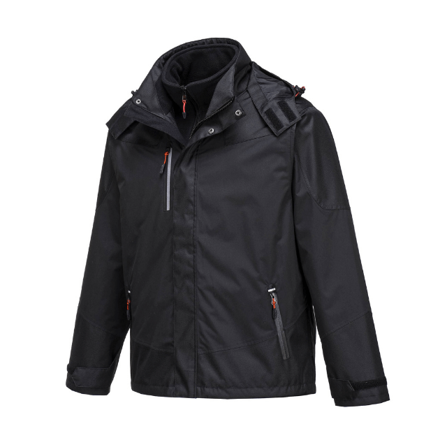 Jakna sa kapuljačom je napravljena od Portwest Extreme premijum vodootpornih ali u isto vreme prozračnih materijala visokih performansi. Kopčanje na cipzar koji je skriven ispod šob lajsne. Kapuljača se može spakovati u predeo kragne. Sastav materijala poliester 100% Peach završna obrada 130 g Postava: gornji deo -poliester mreža 100% 65g, donji deo i rukavi-poliester 100% 190T Taffeta 60g, Materijal koji se skida: poliester flis 100% 280g