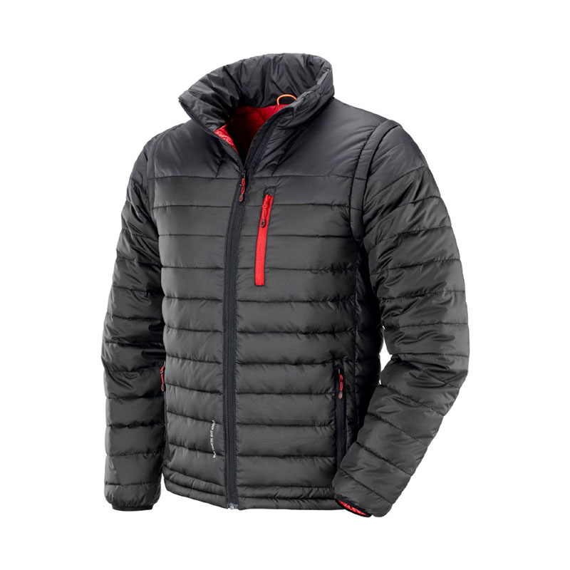 Postava je od poliestera sa oblogom od najlona, iste boje. Dva zip džepa za ruke u donjem delu jakne i jedan grudni džep na zatvaranje pomoću rajsferšlusa. Podešavanje širine jakne/prsluka u struku pomoću učkura. Ravni okovratnik otporan na vetar koji ide direktno uz vrat. Završna obrada prsluka je urađena od vodoodbojnog materijala.