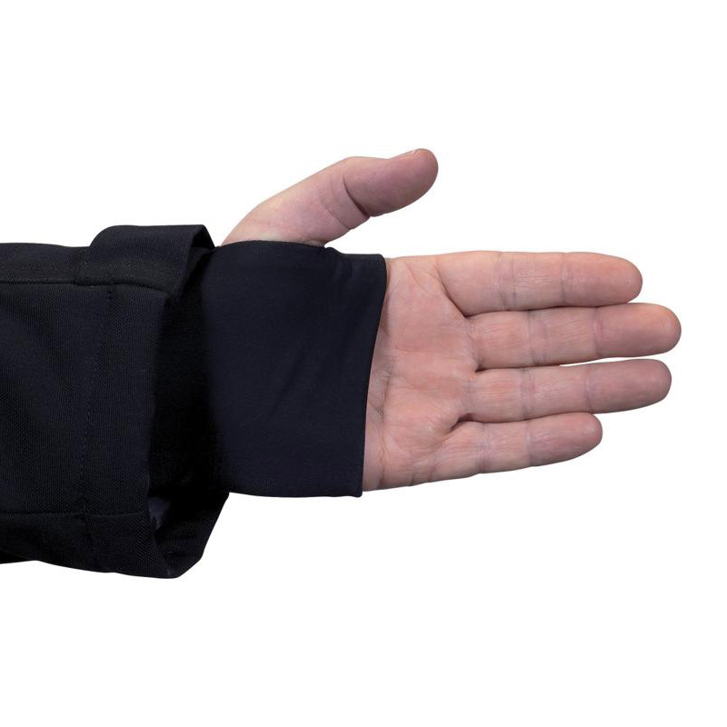 Postava od poliestera. Zatvaranje pomoću rajsferšlusa sa šoblajsnom. Vodonepropusni šavovi. Dodatna ojačanja na ramenima i laktovima. Šest višenamenskih džepova. Postavljena kapuljača na skidanje. Podesivost struka pomoću elastične trake. Elastična traka oko zglobova sa unutrašnje strane rukava radi zaštite od vetra. Unutrašnji džep za dokumente.