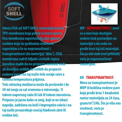 Sastav: soft shell( poliester/spandex) nepromočiv WP 8000mm, otporan na vetar i diše.