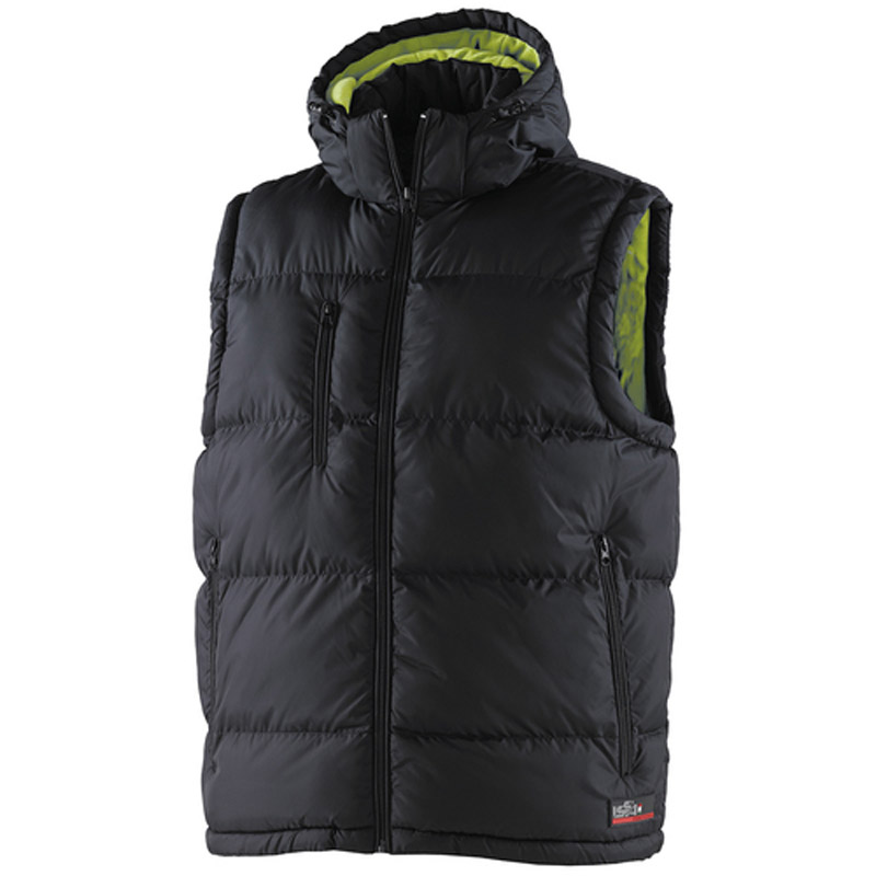 Ovaj prsluk je napravljen od vodootpornog materijala i ima kapuljaču koja se može skinuti. Ima 3 spoljna džepa sa zatvaranjem na rajsferšlus i zelenom postavom unutar džepa.