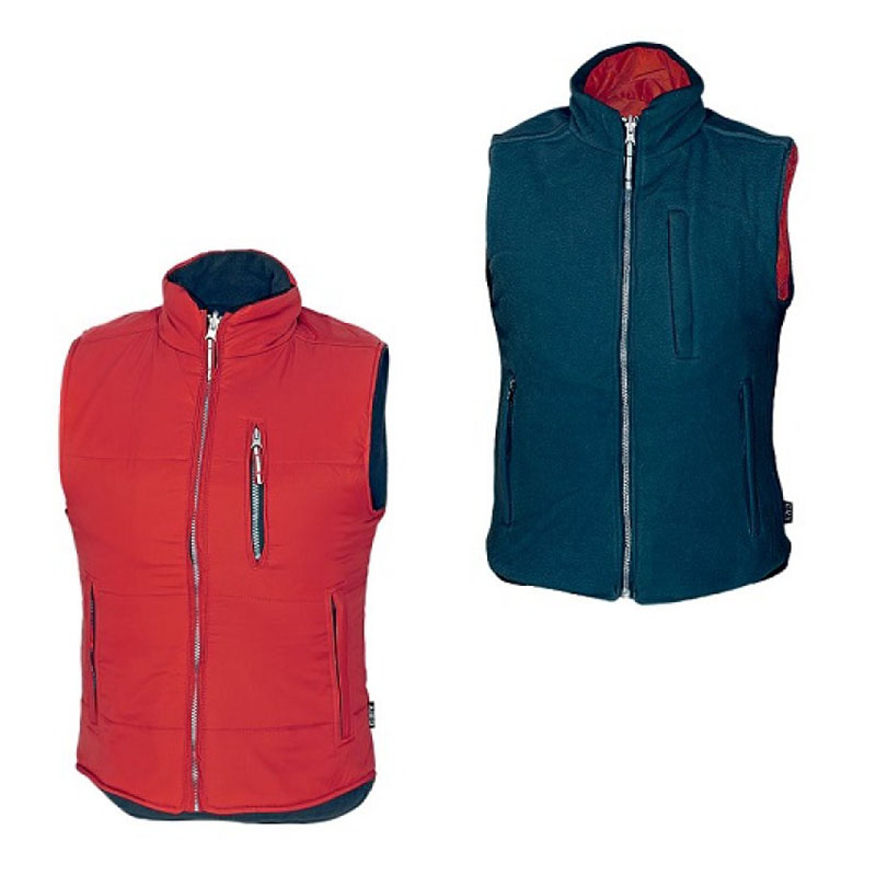Udoban termo ženski prsluk sa dva lica, spoljašnji sloj je od 100% najlona AC sa vodootpornim slojem, unutrašnji sloj je 100% poliesterski flis, sa visokom kragnom i dužim leđnim delom, prsluk ima praktične džepove sa obe strane, kombinacija boja.