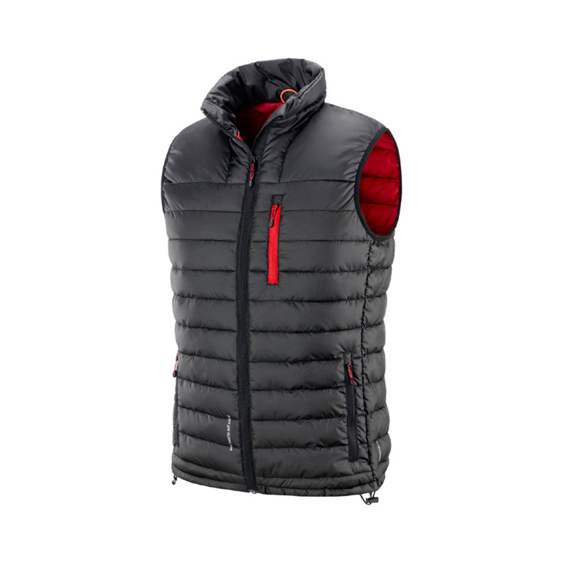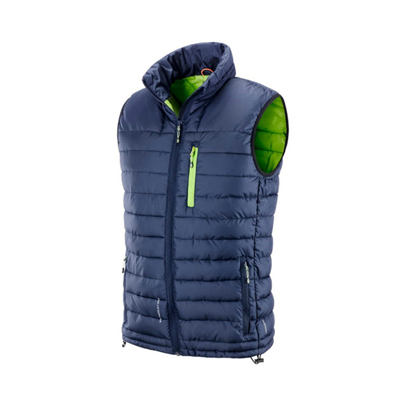 Postava prsluka je od poliestera kao i spoljašnji deo. Obloga od najlona u kontrastnoj boji. Dva zip džepa u donjem delu i jedan grudni džep na zip zatvaranje. Otvori za ruke obloženi lastišem. Zatvaranje pomoću rajsferšlusa. Podešavanje širine prsluka u struku pomoću učkura. Ravni okovratnik koji ide direktno uz vrat. Vodoodbojna završna obrada prsluka.