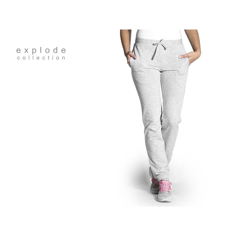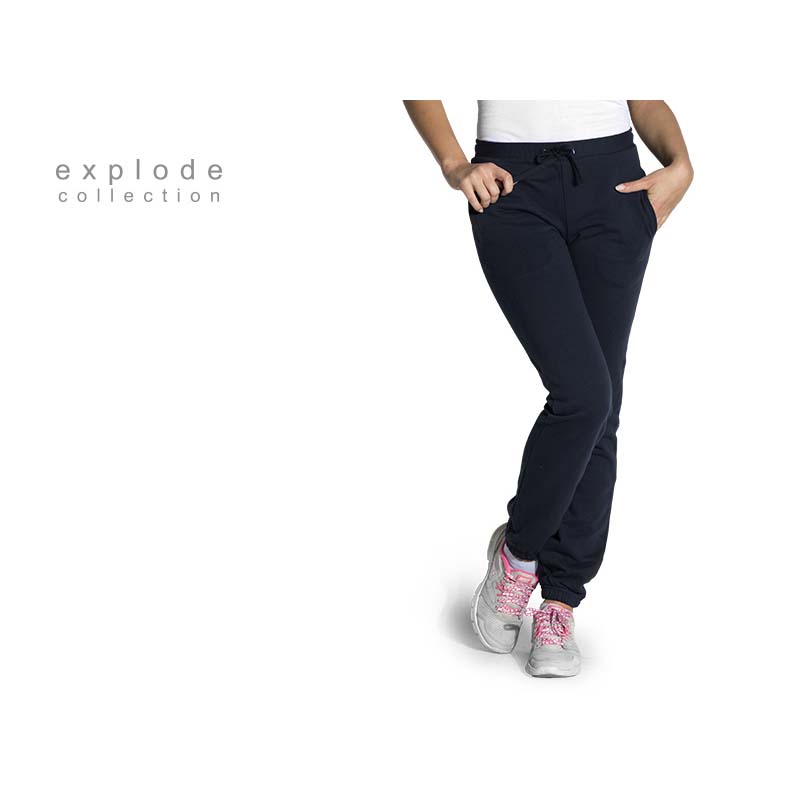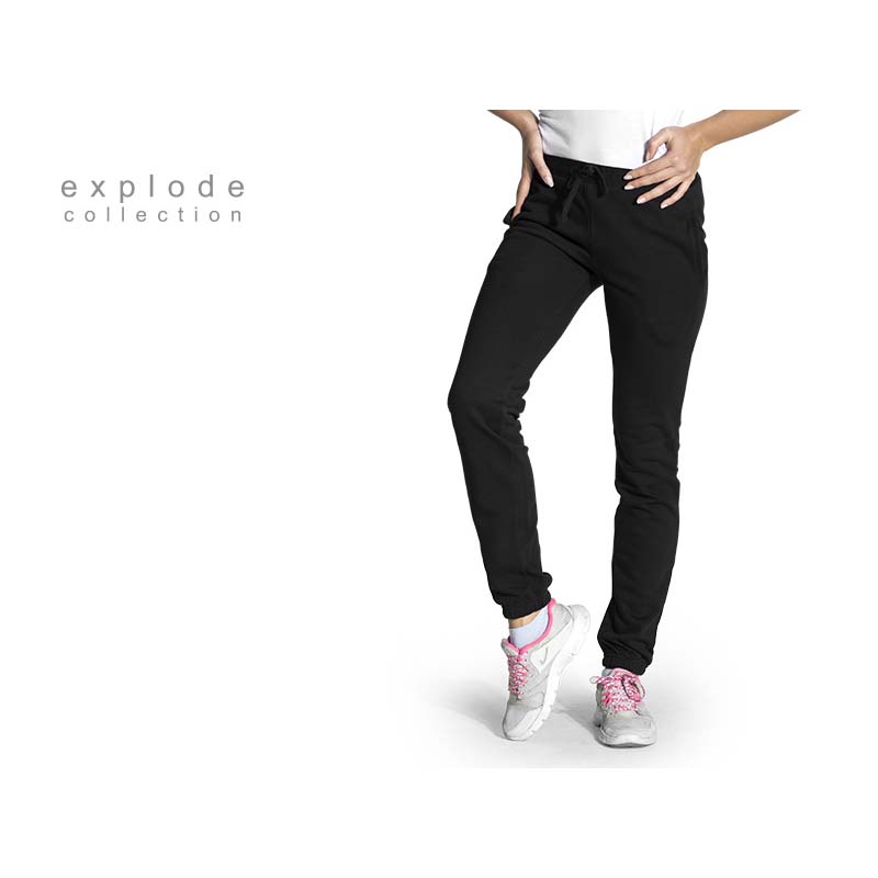 Opis | Ženska trenerka, 260 g/m2, pojas sa lastišem i učkurom u boji trenerke, elastične ranfle na dnu, dva prednja džepa |