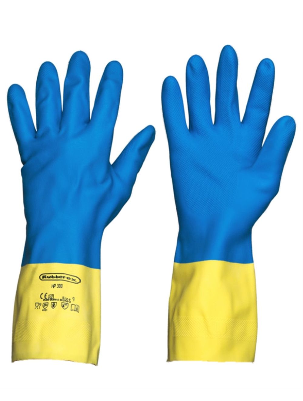 Rukavice hemijske Heveaprene HP 300. Polihloropren - neopren-prirodna guma, žuto-plave. Flokirane, EN 388 : 3111, CE kategorija: 3.