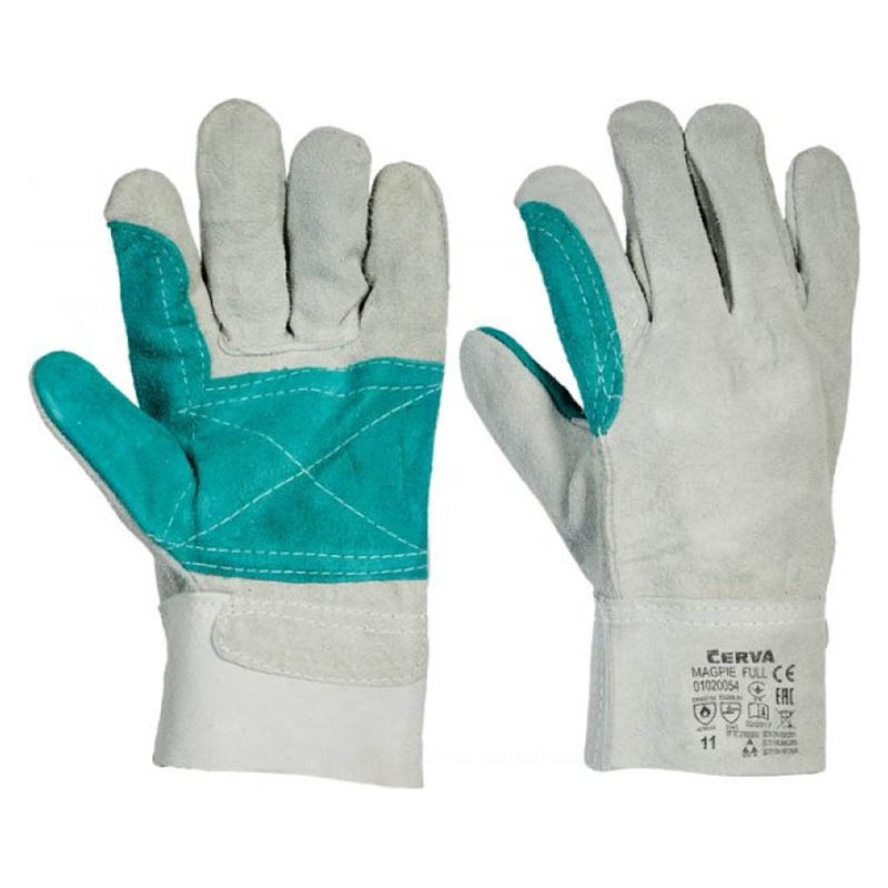 Kombinovane rukavice kod kojih je nadlanica od pamuka, a dlan od goveđeg špalta, čvrsta manžetna i ojačanje od goveđeg špalta na dlanu, palcu i kažiprstu, dlan je postavljen.