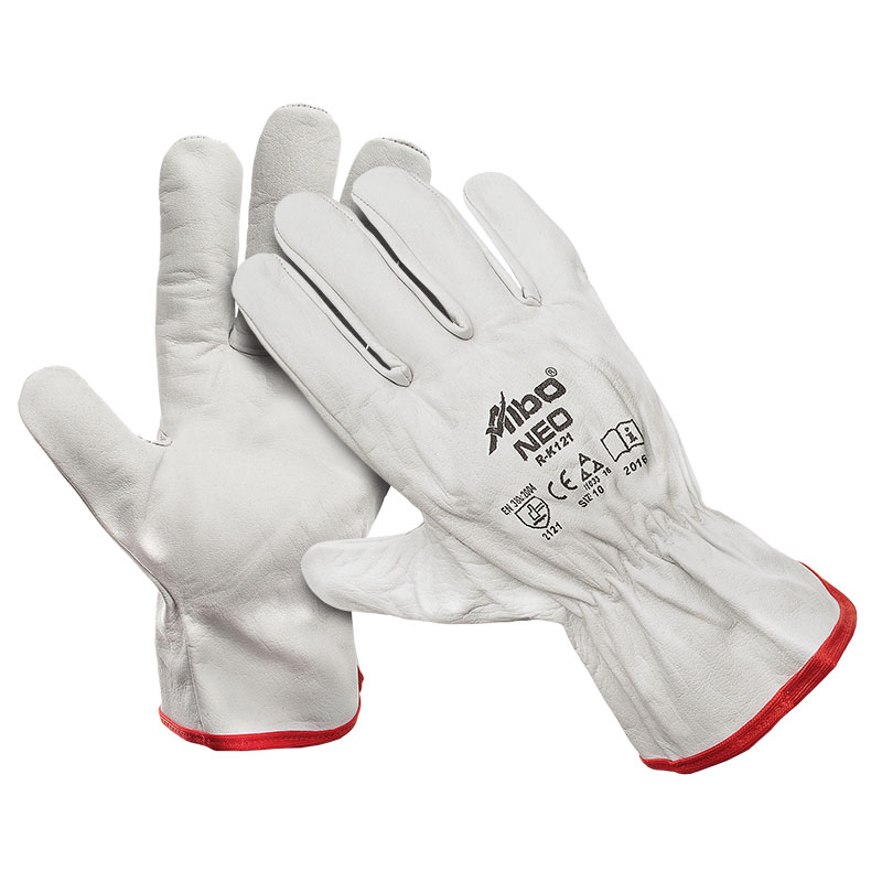 Zaštitne rukavice bele boje proizvedene od mekane goveđe kože na dlanu i nadlanici, model Driver. Koriste se u mašinskoj industriji, građevinskoj industriji, transportu, magacinima, metalnoj industriji i sl.