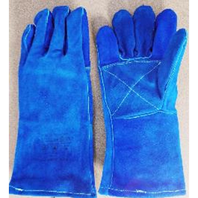 Zaštitne rukavice za zavarivače,CE/SFL/B/DP SIMARGL W03 od goveđeg špalta plave boje dužine 35 cm, sa zaštićenim/skrivenim šavovima,ojačanjem na dlanu i palcu.Postavljene pamučnom postavom.Rukavice imaju sertifkat za zavarivanje tip A.