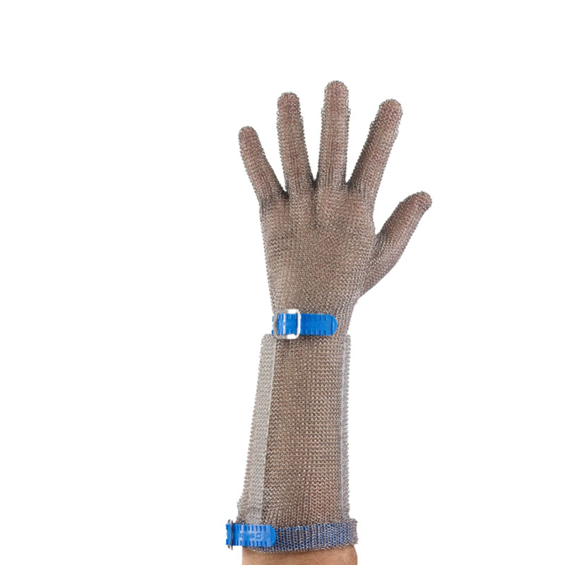 Kopče za podešavanje ne mogu kliziti po traci pružajući pojačanu zaštitu za korisnika. Na ovoj rukavici nema bočnog proreza što znači da je zglob potpuno zaštićen. Glatke plastične trake prilagođavaju se svim morfologijama i garantuju udobnost i ergonomiju. Lančana mreža u titanijumu je 40 % lakša od rukavice od nerđajućeg čelika.