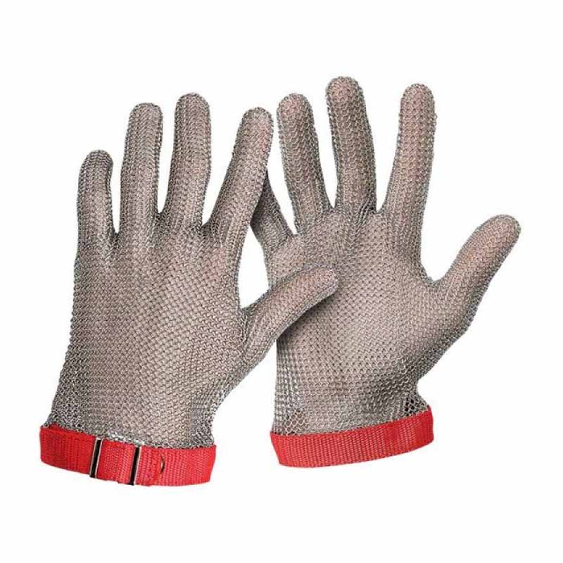 Mesarske rukavice napravljene od prstenova od nerđajućeg čelika, bez manžetne, podesiva traka, maksimalna zaštita od sečenja, leva-desna.