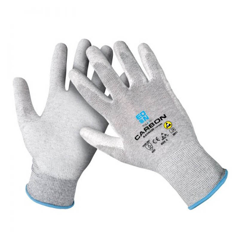 Pletene bešavne antistatik najlonske rukavice sa integrisanim ugljenim vlaknima i slojem poliuretana na dlanu i prstima i elastičnom manžetnom. Sprečavaju pojavu elektrostatičkog pražnjenja, i kao takve su pogodne za rad u automobilskoj i elektro industriji, u montaži, instalaciji, čistim sobama, potencijalno eksplozivnim sredinama i sl. Osnovni materijal ovih rukavica je testiran i u skladu je sa EN 1149-1.