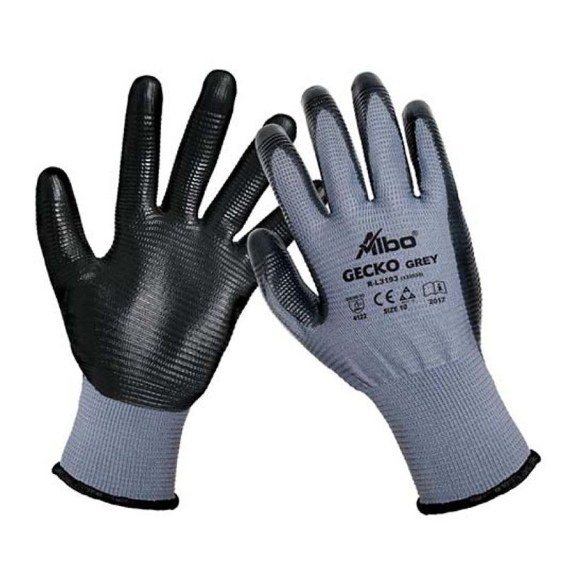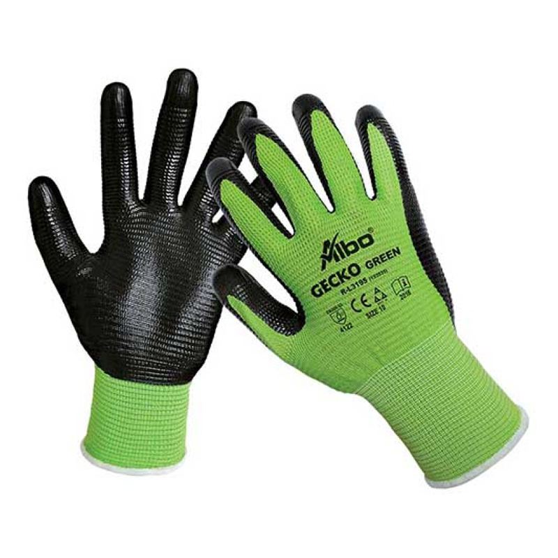 Bešavno pletene zaštitne rukavice od poliesterskih vlakana, sa slojem glatkog nitrila na dlanu i prstima. Reljefasta tekstura pruža odlična protivklizna svojstva i odličan osećaj pri radu. Pojačana otpornost na habanje. Dostupne u više boja.