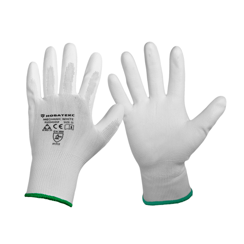 Tanak sloj belog poliuretana na dlanovima i prstima pruža odličan hvat i otpornost na habanje. Omogućava rad sa sitnim predmetima i precizne manipulacije bez gubitka osećaja u prstima.