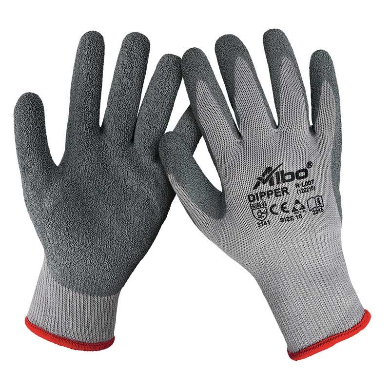 Slojevite, pletene, bešavne rukavice sa elastičnom manžetnom, kombinacija pamuka i poliestera sa slojem prirodnog lateksa, elastične sa hrapavom površinskom obradom na dlanu i prstima za bolju protivkliznost, paropropusnost.