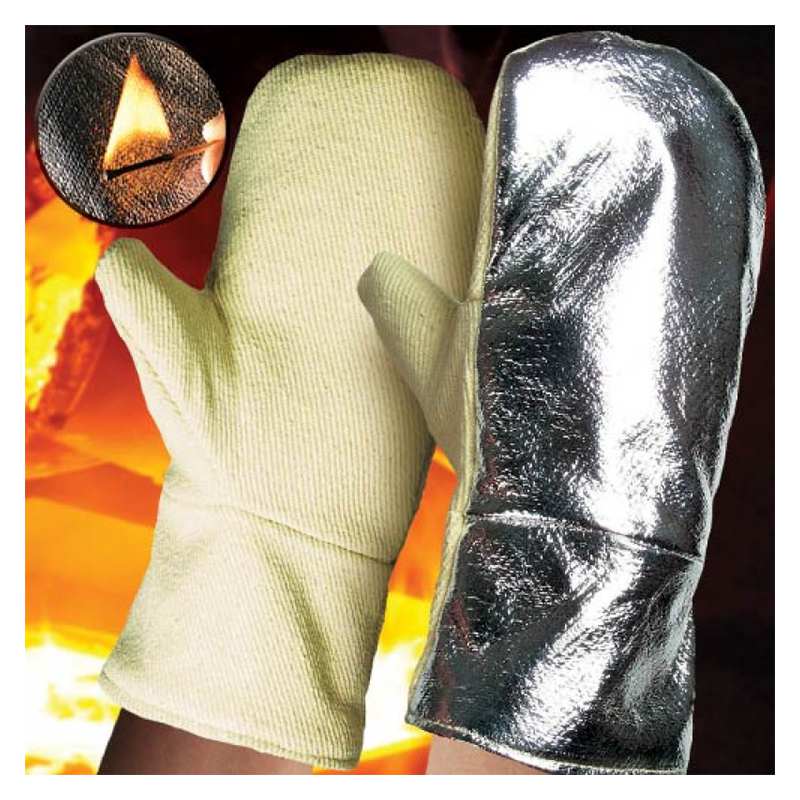 Rukavice iz tri sloja Aramida (600 g/m2), pružaju odličnu zaštitu od kontakta sa vrelim predmetima do 250C i od kratkotrajnog kontakta sa predmetima temperature do 500C, univerzalna veličina.